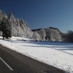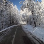 Auto smo parkirali ispred spilje Vrelo te krenuli cestom udaljavajući se od jezera i Fužina. Nakon toliko mirovanja zbog kiše ne škodi malo protegnuti noge. Okružuje nas zima, u svom pravom izgledu, a nadamo se da ćemo ju ovdje, bar djelomično, uspijeti i dočarati.